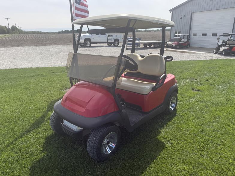 This is a Club Car factory refurbished fuel-injected gas golf cart that has been completely serviced. It has a Kohler engine. It has a New Club Car Red body with a new Club Car black top and new Club Car premium black seats. It has new Club Car 12" wheels and tires and a new Club Car flip-down windshield. This cart is street legal and has a USB port.
